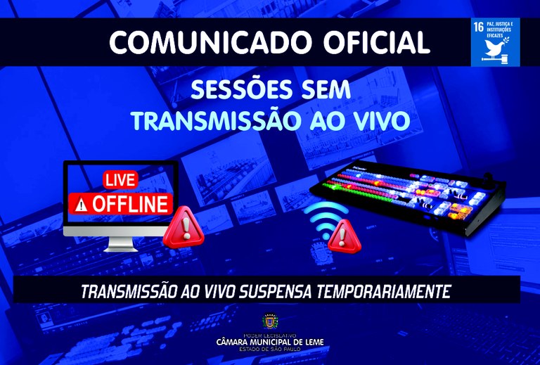 Sessões não terão transmissão ao vivo temporariamente por problema técnico em equipamento