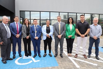 A presidente da Câmara Municipal, vereadora Cíntia Grossklaus, destacou a importância da nova sede para o município e o compromisso coletivo em torno da segurança pública: